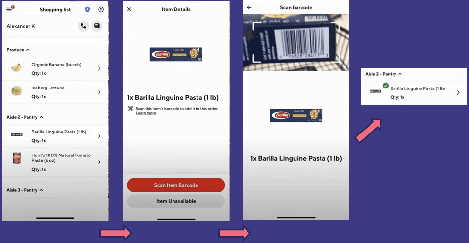 DoorDash, a popular online food delivery platform, has a feature for Dashers (employees of DoorDash) called Shop and Deliver, which is a system for picking up grocery items and delivering them to customers.