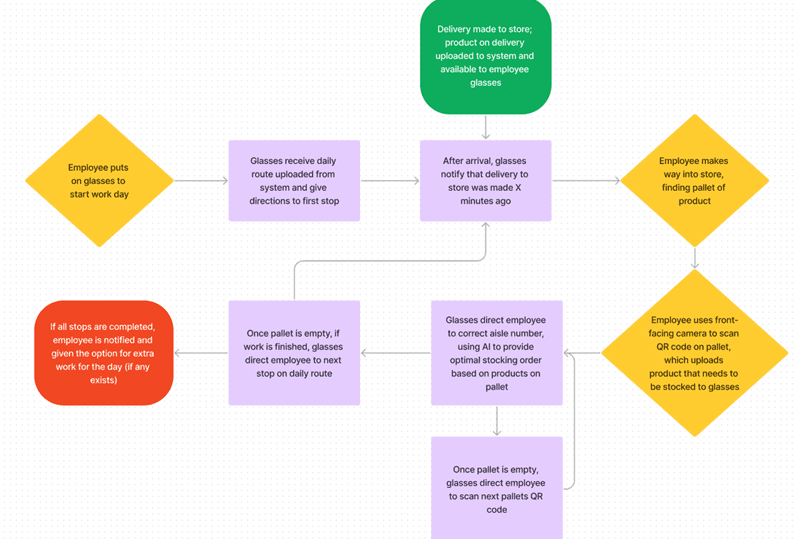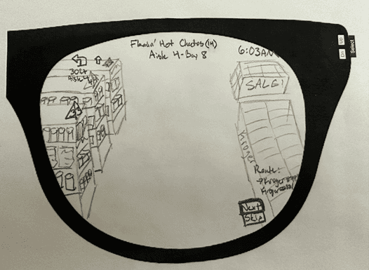 We decided to design an AR/XR and IoT application/device to support employees of large businesses/warehouses that deal with large volumes of product, such as Amazon Warehouse order pickers and stockers and online order/pick-up in-store shopping apps.