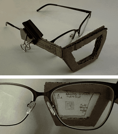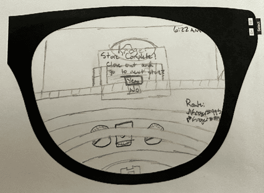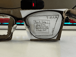 We were also tasked with creating a physical prototype of our product. Using our paper prototype and integrating user feedback, we used a pair of glasses and cardboard to simulate an augmented reality experience. The prototype's screens were tailored to fit the glasses, maintaining the user flow from our paper prototype.