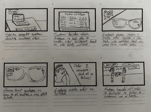 To conceptualize our vision for the product, we decided to create a paper prototype of the user journey of the AR glasses.